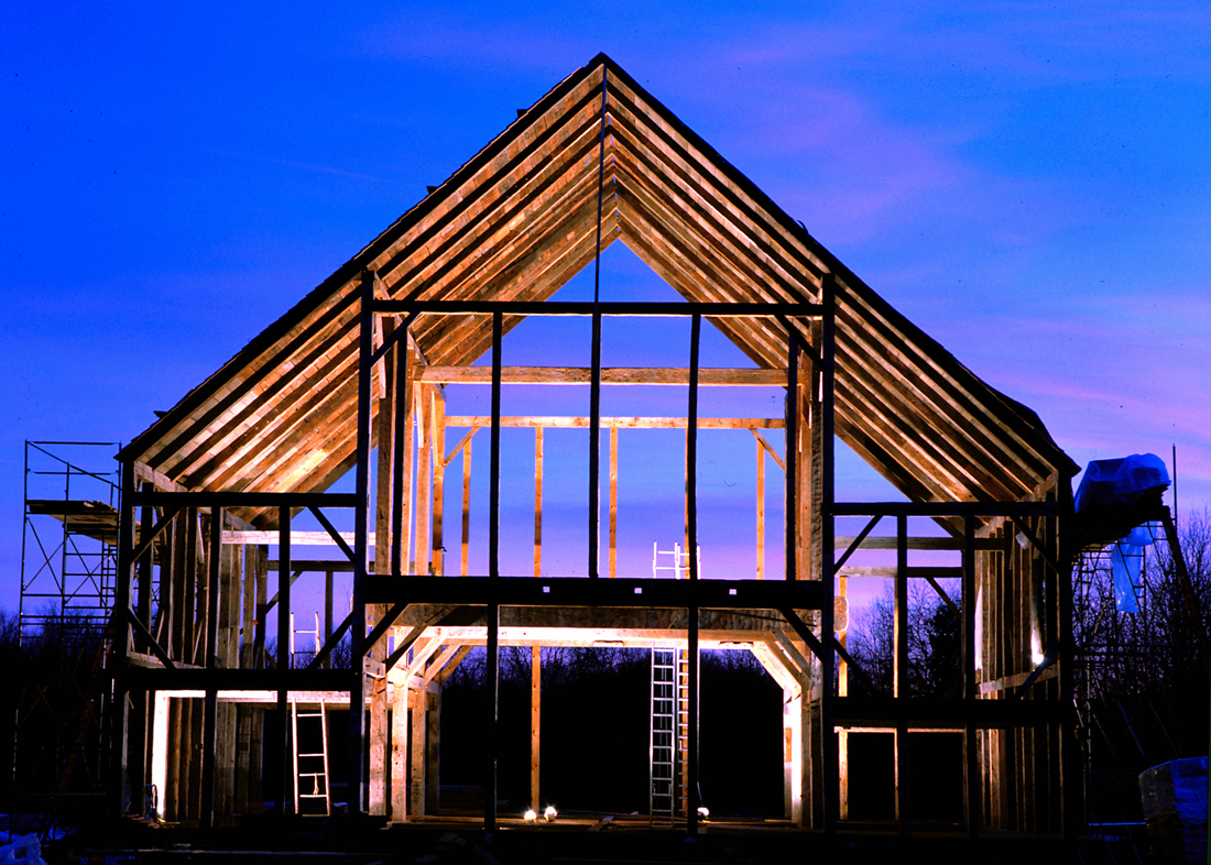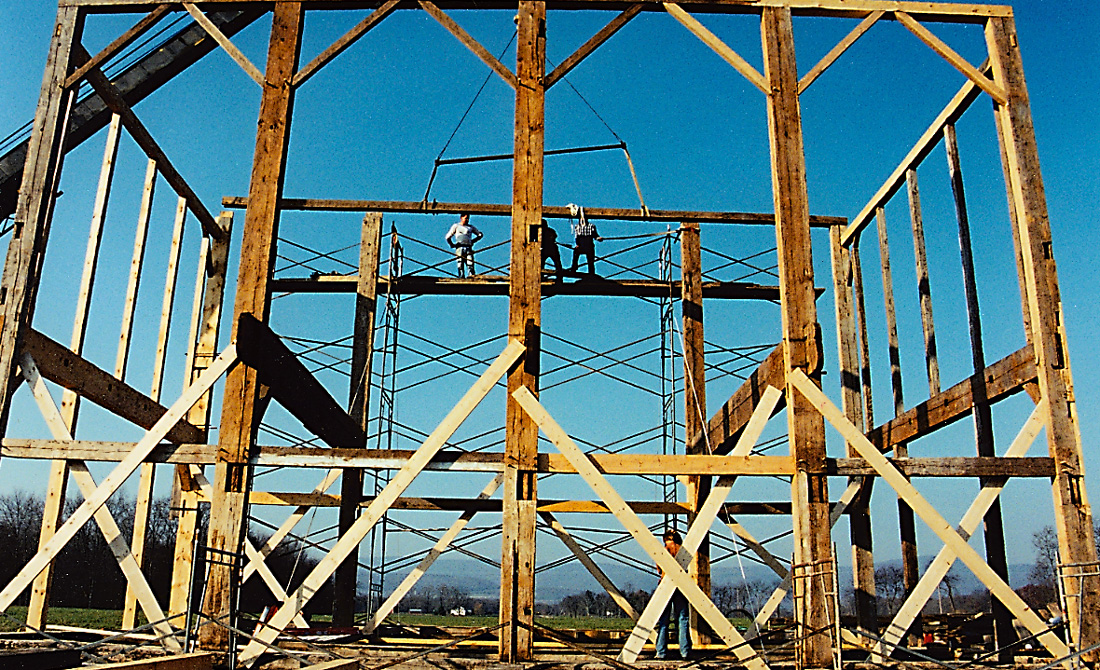 On a cold November morning in 2001, six strong men armed with long ropes and heavy wooden mallets (used to hammer home the hardwood pegs that held the frame together) gathered for a barn raising.